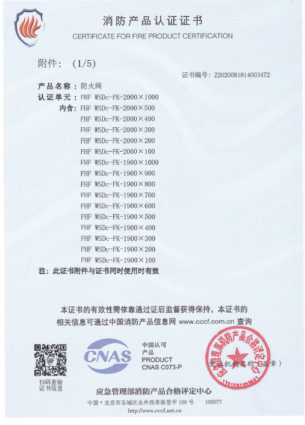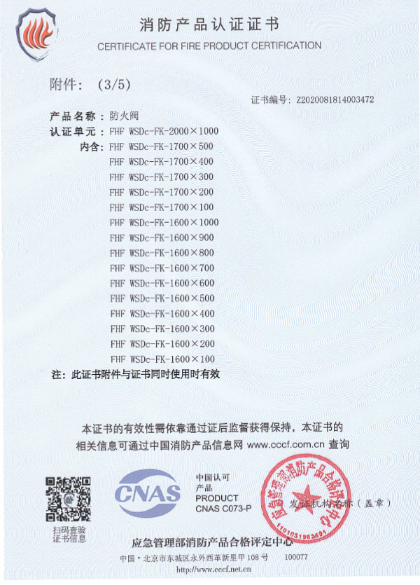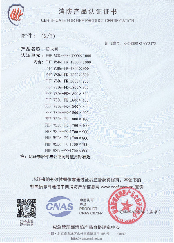 防火閥認(rèn)證證書2000X1000