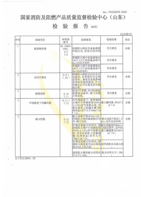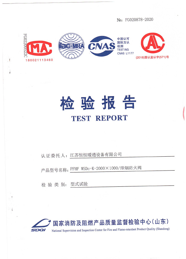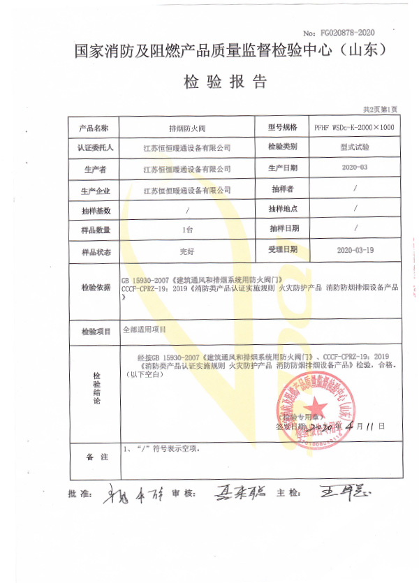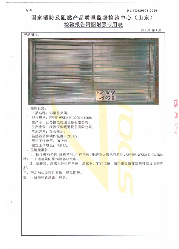 排煙防火閥認(rèn)證證書(shū)2000X1000